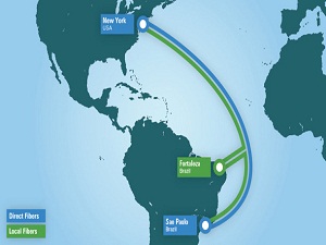 全長(zhǎng)10400千米的Seabras-1海底電纜一旦完成,將連接巴西海濱城市桑托斯到紐約。海底電纜將提供32Tbps容量,是巴西和美國(guó)之間的首條直接連接的光纖電纜。本計(jì)劃于2014年首次運(yùn)營(yíng),但是海底布線公司Seaborn現(xiàn)預(yù)計(jì)要到2016年投入運(yùn)營(yíng)。