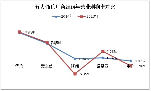 4、五大通信廠商2014年?duì)I業(yè)利潤水平對比