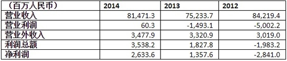 5、中興則與阿朗走出同樣的軌跡,從2012年的50億人民幣的營業(yè)虧損中艱難走到2014年才錄得6000萬人民幣的營業(yè)利潤。至于其借財(cái)報(bào)發(fā)布廣為宣傳的利潤翻番則主要來自于軟件產(chǎn)品增值稅退稅而產(chǎn)生的近35億人民幣的營業(yè)外收入,其近三年利潤情況如表所示: