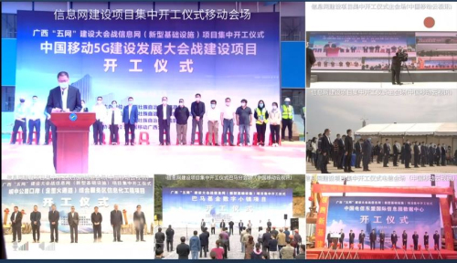 ICC訊 4月12日,廣西“五網(wǎng)”建設大會戰(zhàn)信息網(wǎng)(新型基礎設施)項目集中開工儀式在南寧五象云谷云計算數(shù)據(jù)中心舉行。廣西移動在開工儀式上表示,將在2020年底累計開通5G基站達到1.1萬個,全力以赴建設覆蓋全區(qū)14個城市的5G精品網(wǎng)絡,通過5G“新基建”助力“數(shù)字廣西”戰(zhàn)略。
