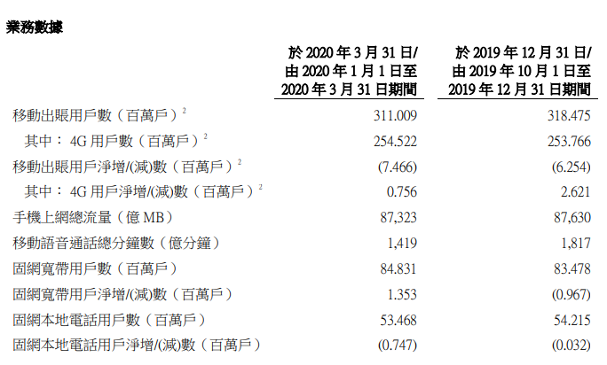 在移動業(yè)務(wù)方面,中國聯(lián)通自去年下半年起適時(shí)調(diào)整經(jīng)營策略,加強(qiáng)自律,堅(jiān)持理性規(guī)范競爭,并從以往重點(diǎn)關(guān)注用戶增長數(shù)量,轉(zhuǎn)為重點(diǎn)關(guān)注用戶發(fā)展質(zhì)量和價(jià)值,深化轉(zhuǎn)型創(chuàng)新,嚴(yán)控營銷費(fèi)用、無效低效產(chǎn)品和渠道,雖然移動業(yè)務(wù)發(fā)展短期會受到一定的影響,但相信有利于公司長遠(yuǎn)發(fā)展和價(jià)值最大化。2020年第一季度,移動出賬用戶凈減747萬戶,達(dá)到3.11億戶,其中4G用戶達(dá)到2.55億戶。移動出賬用戶ARPU為人民幣40.0元。移動服務(wù)收入為人民幣377.49億元,比去年同期下降4.1%,跌幅較去年全年的-5.3%有所改善。