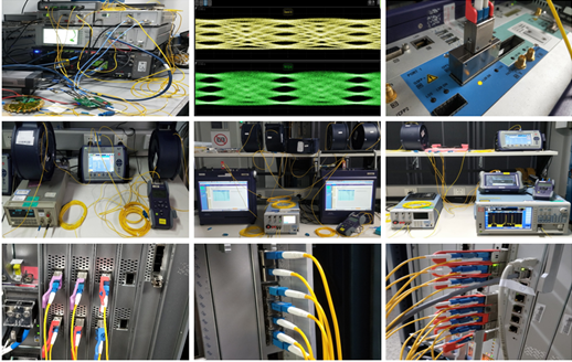 本次測評工作從2019年6月底啟動,中國信息通信研究院技術(shù)與標準研究所承擔(dān)具體測評任務(wù)。相對2018年開展的首次測評,參與廠商數(shù)量、參測光模塊類型、測試項目等方面明顯增加,國內(nèi)外光模塊廠商光迅、海信、旭創(chuàng)、華工正源、新易盛、Finisar、Lumentum、索爾思、易飛揚、優(yōu)博創(chuàng)、易銳、臺達參加了測試,儀表廠商Keysight、VIAVI、VeEX,運營商中國移動、中國電信、中國聯(lián)通以及系統(tǒng)設(shè)備商華為、中興、中信科等對測試提供了大力支持。參測光模塊覆蓋了5G承載應(yīng)用典型傳輸速率和距離場景,包括10Gb/s 可調(diào)80km、25Gb/s LAN-WDM 10km、25Gb/s LAN-WDM 20km、25Gb/s LAN-WDM 40km、25Gb/s BiDi 15km、25Gb/s BiDi 20km、25Gb/s DWDM 10km、25Gb/s 可調(diào)10km、50Gb/s PAM4 10km、50Gb/s PAM4 40km、50Gb/s PAM4 BiDi 10km、單波 100Gb/s 10km等12種類型,其中WDM型、波長可調(diào)型、50Gb/s PAM4 BiDi 10km、單波100Gb/s 10km等均為新增模塊類型。