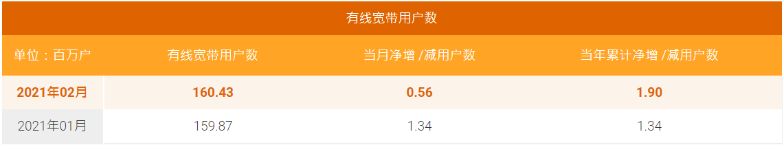 有線寬帶方面,中國電信2月有線寬帶用戶數(shù)凈增56萬戶,累計達(dá)到1.6043億戶。此外,中國電信2月固定電話用戶數(shù)凈減19萬戶,累計達(dá)到1.0762億戶。