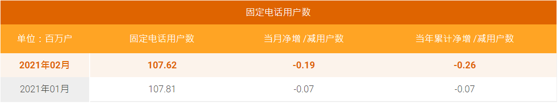 ICC訊 3月22日,中國電信官網(wǎng)公布2021年2月份運(yùn)營數(shù)據(jù)。