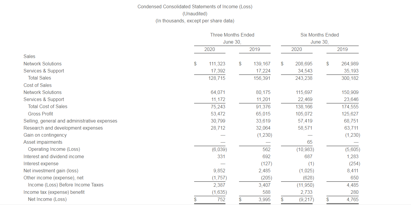 ICC訊(編譯:Vicki)ADTRAN公布了2020年第二季度的業(yè)績。本季度的銷售額為1.29億美元,而2019年第二季度為1.56億美元,同比下滑17.3%。2020年二季度凈利潤為752萬美元,去年同期凈利潤為3955萬美元。 該季度每股凈收益0.02美元,而2019年第二季度凈收益0.08美元。