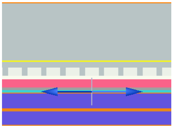 邊界條件因底部為整面金屬電極,可使用金屬條件讓計(jì)算較快,而其他邊界使用完美吸收層。盡管結(jié)構(gòu)有周期,但必須避免周期邊界條件讓光源也產(chǎn)生周期而產(chǎn)生與模型不符的同調(diào)性。本結(jié)構(gòu)因光柵為單方向變化,可以用 ANSYS Lumerical FDTD 2D 來模擬,搭配 FDTD 一次模擬多波長(zhǎng)的特性,可以用很少的內(nèi)存與仿真時(shí)間得到高精細(xì)的角度信息與色彩信息。網(wǎng)格部分,Ansys Lumerical 可針對(duì)結(jié)構(gòu)需要,以結(jié)構(gòu)名稱指定加密網(wǎng)格的區(qū)域,讓仿真可以快速又高精度。