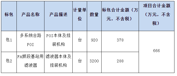 ICC訊 (編輯:Nicole) 福建移動啟動2020年無源器件公開招標集采項目(招標編號: FJYD20200000757),主要采購物資為多系統(tǒng)合路POI和FA頻段基站用濾波器,項目總預算金額約為666萬元(不含稅)。