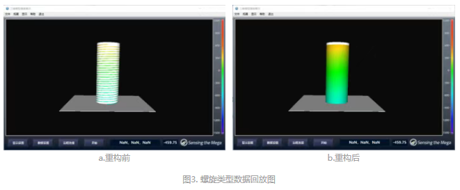 螺旋:圖3為螺旋類(lèi)型數(shù)據(jù)回放圖。針對(duì)螺旋狀光纖,能精準(zhǔn)還原其應(yīng)變分布。