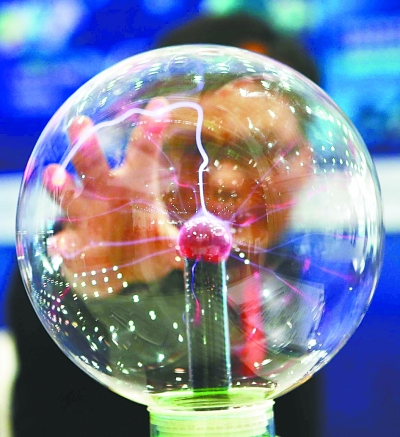 游客把玩光電玩具。
