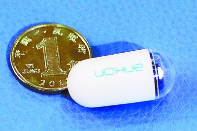 “膠囊機(jī)器人”是光博會上最小的機(jī)器人,它體重不足5克,肚子里卻藏著300多個高精度零件,集成了最先進(jìn)的LED照明、成像和圖像處理芯片,能在患者的胃里打著燈翻轉(zhuǎn),進(jìn)行全方位拍攝?;颊咧恍鑼⒛z囊用水吞服,穿上檢查服躺在床上,15分鐘就能完成一次無痛胃鏡,準(zhǔn)確率達(dá)到93.4%。