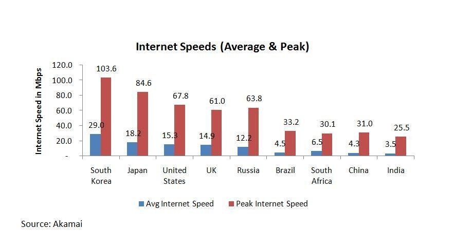 此外,行業(yè)在網(wǎng)絡(luò)速度、覆蓋范圍和客戶服務(wù)等關(guān)鍵指標上的表現(xiàn)不盡如人意。例如,印度的平均互聯(lián)網(wǎng)速度為3.5 Mbps,而韓國則為29 Mbps,美國為15 Mbps,中國則為4.3Mbps(見下圖)。