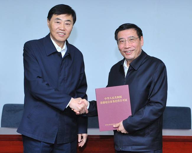 工業(yè)和信息化部部長苗圩出席頒證會并頒發(fā)許可證。工業(yè)和信息化部副部長陳肇雄、中國電信集團有限公司董事長楊杰、中國移動通信集團有限公司董事長尚冰、中國聯(lián)合網(wǎng)絡(luò)通信集團有限公司董事長王曉初,以及工業(yè)和信息化部相關(guān)司局負(fù)責(zé)人參加會議。