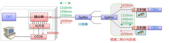 Reflector透射1310nm/1490nm的業(yè)務(wù)光,并將1650nm的維護(hù)光反射;