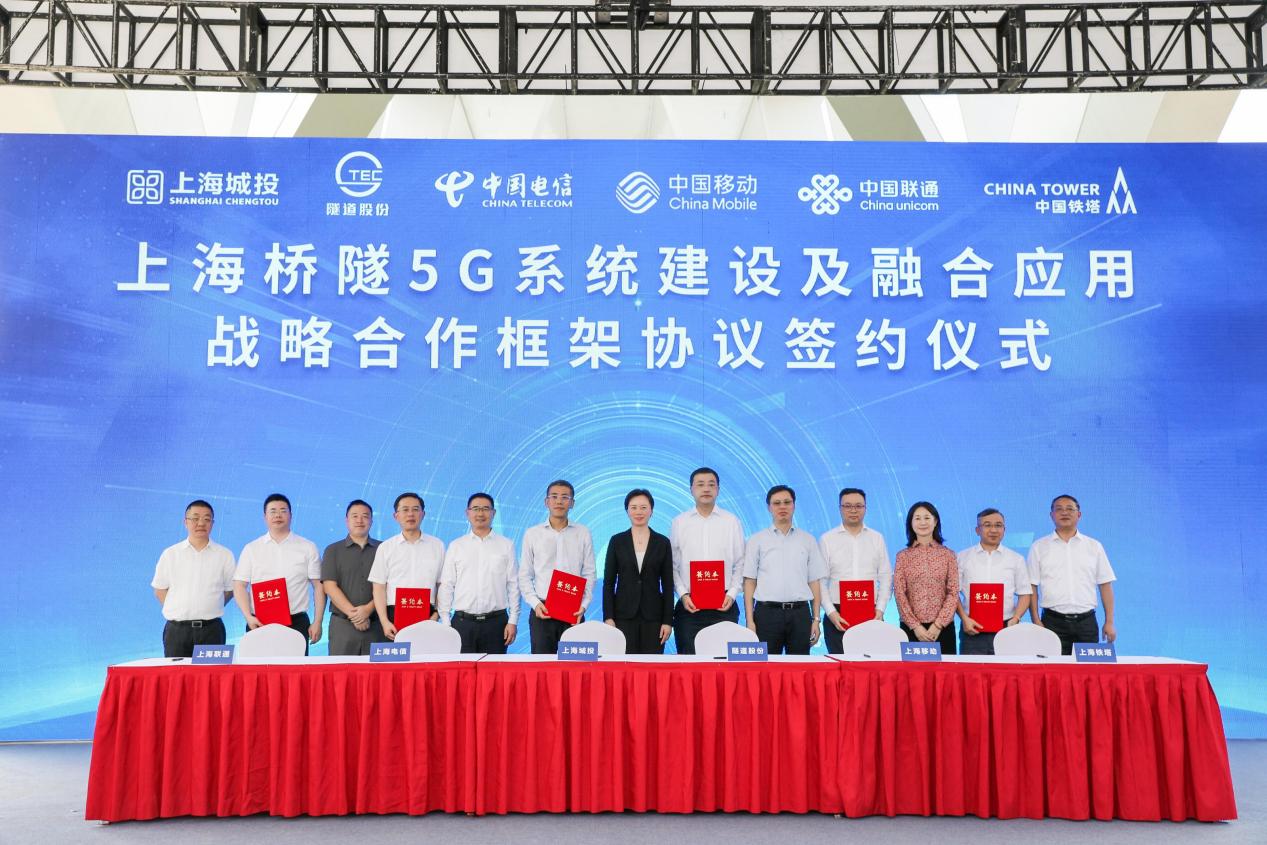 圖:《上海橋隧5G系統(tǒng)建設(shè)及融合應(yīng)用戰(zhàn)略合作框架協(xié)議》簽約儀式