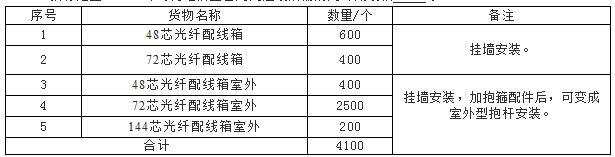 值得注意的是,以上需求數(shù)量為初步預估數(shù)量,以實際需求數(shù)量、規(guī)格為準。光纖配線箱的具體標準(含內(nèi)配)詳見附件2—光纖配線箱技術(shù)規(guī)范書。