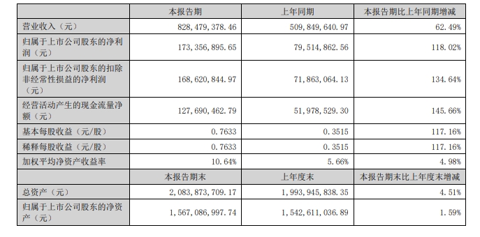 報(bào)告顯示,2025上半年,太辰光實(shí)現(xiàn)營(yíng)業(yè)收入8.28億元,同比增長(zhǎng)62.49%;實(shí)現(xiàn)歸屬于上市公司股東的凈利潤(rùn)1.73億元,同比增長(zhǎng)118.02%。