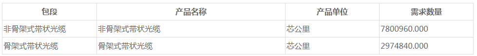 ICC訊 (編輯:Nicole) 中國(guó)移動(dòng)啟動(dòng)2021年至2022年帶狀光纜產(chǎn)品集采項(xiàng)目(招標(biāo)編號(hào):CMCC20210000089),擬采購(gòu)產(chǎn)品為非骨架式帶狀光纜及骨架式帶狀光纜產(chǎn)品。項(xiàng)目劃分為兩個(gè)標(biāo)包,非骨架式帶狀光纜產(chǎn)品預(yù)估采購(gòu)規(guī)模約5.88萬(wàn)皮長(zhǎng)公里,折合780.10萬(wàn)芯公里;骨架式帶狀光纜產(chǎn)品預(yù)估采購(gòu)規(guī)模約1.43萬(wàn)皮長(zhǎng)公里,折合297.48萬(wàn)芯公里。