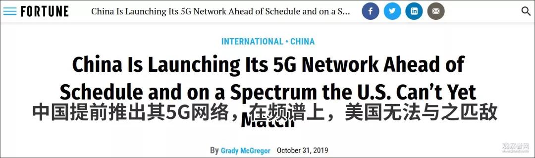 ICCSZ訊 11月1日,中國正式開啟5G商用時(shí)代。在此之前,包括美國、韓國在內(nèi)的一些國家已經(jīng)率先開通5G網(wǎng)絡(luò),但對(duì)于中國這個(gè)“后來者”,多家主流外媒卻表現(xiàn)出一致的態(tài)度: