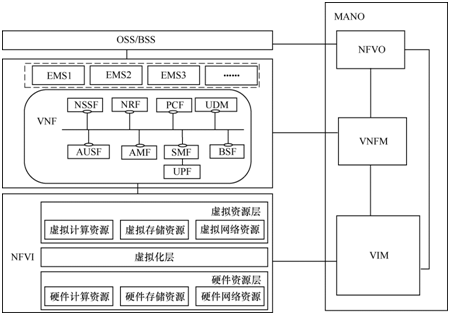 此外,MANO還有OSS/業(yè)務(wù)支撐系統(tǒng)(Business Support System,BSS)網(wǎng)元。該網(wǎng)元除支持傳統(tǒng)網(wǎng)絡(luò)管理功能外,還支持在虛擬化環(huán)境下與Orchestrator交互,完成維護(hù)與管理。
