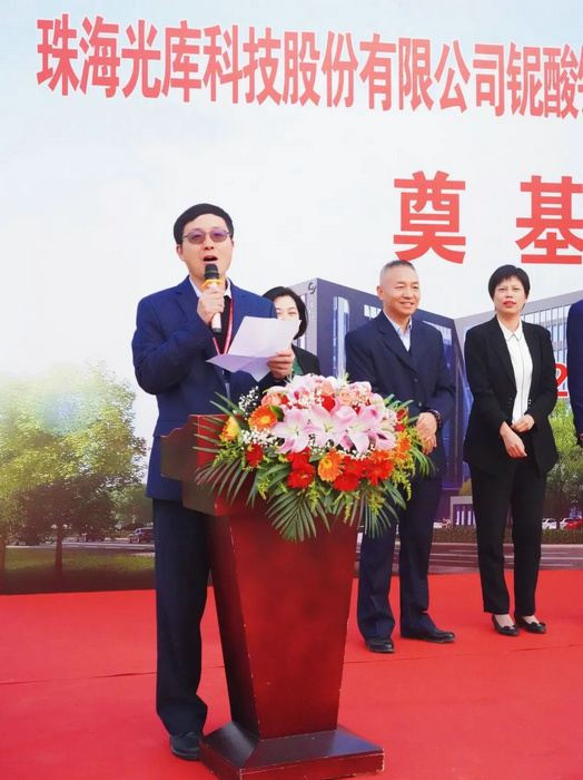 上午8時(shí),儀式正式開(kāi)始。光庫(kù)科技董事長(zhǎng)、總經(jīng)理王興龍博士攜各位領(lǐng)導(dǎo)一同入場(chǎng)并登臺(tái)致辭,他表示:光庫(kù)科技芯片產(chǎn)業(yè)園項(xiàng)目的奠基是光庫(kù)科技發(fā)展過(guò)程中具有標(biāo)志意義的一件大事,也是加快鈮酸鋰高速調(diào)制器芯片及模塊研發(fā)和產(chǎn)業(yè)化落地的重要環(huán)節(jié)!該項(xiàng)目的奠基不僅僅標(biāo)志著光庫(kù)科技產(chǎn)業(yè)鏈的成功擴(kuò)展,并且對(duì)公司經(jīng)營(yíng)規(guī)模、競(jìng)爭(zhēng)實(shí)力的提升都具有十分重要的意義。同時(shí),對(duì)本地的經(jīng)濟(jì)發(fā)展和產(chǎn)業(yè)發(fā)展也具有較大的貢獻(xiàn)。