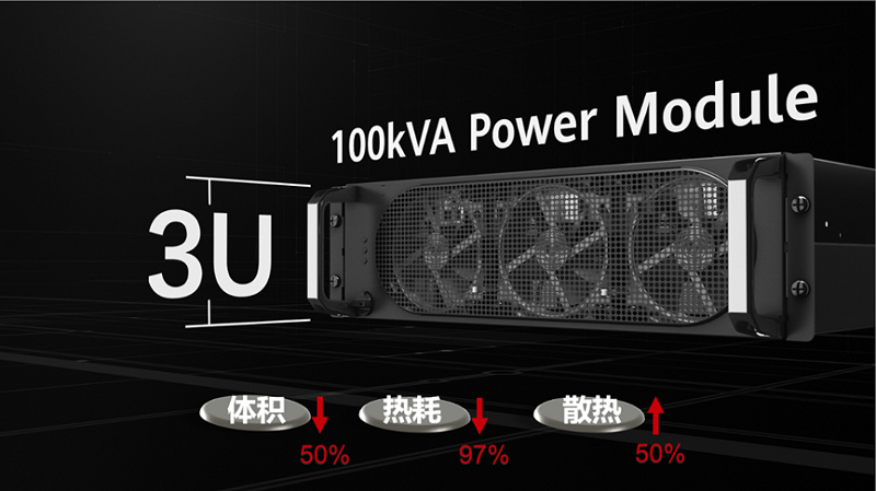 功率模塊從50kW/3U向100kW/3U突破,是華為模塊化UPS技術(shù)積累的強(qiáng)大體現(xiàn)。2020年,華為面向全球發(fā)布100kW/3U超高密模塊化熱插拔功率模塊,通過多項(xiàng)專利,在功率模塊體積、熱耗、散熱等方面進(jìn)行了創(chuàng)新設(shè)計(jì),實(shí)現(xiàn)高密新高度。