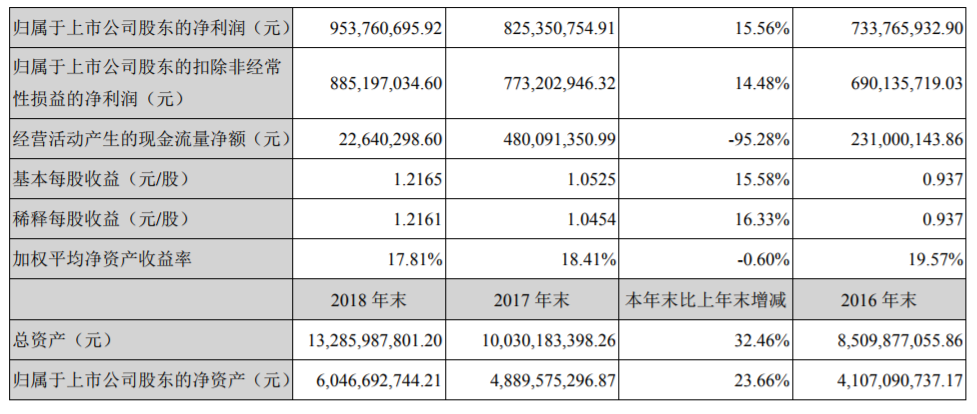 2018年度業(yè)績數據