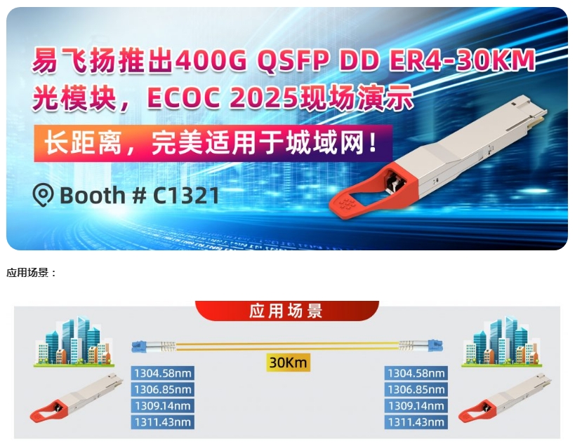 易飛揚(yáng)推出400G QSFP-DD ER4-30km光模塊,ECOC 2025現(xiàn)場演示插圖2