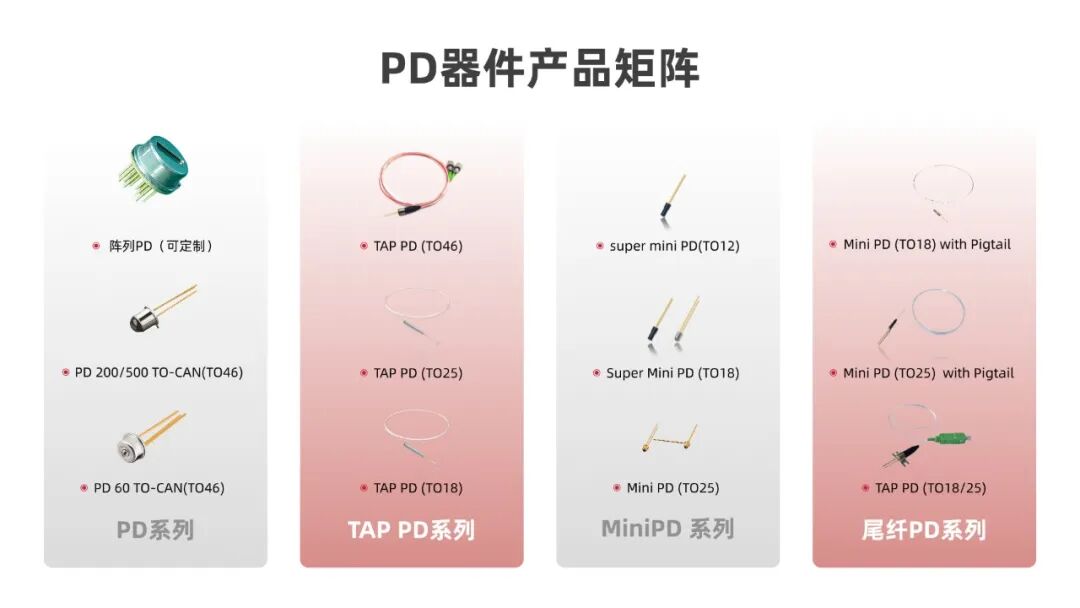 01 自研PD芯片及系列器件產(chǎn)品矩陣 PRODUCT MATRIX