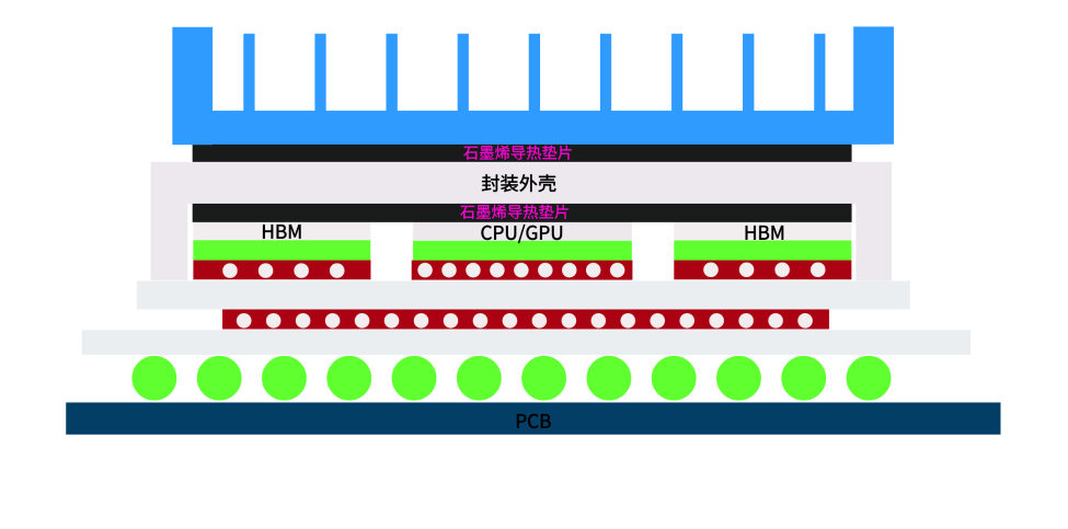 將鴻富誠石墨烯導熱墊片應用于封裝,直接覆蓋 GPU、HBM 等核心芯片背面,可實現(xiàn)三重關鍵價值: