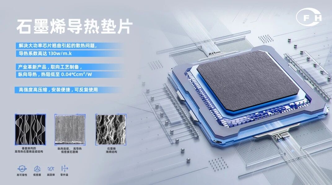 材料特性:三大核心優(yōu)勢重塑散熱能力針對 2.5D 封裝熱界面材料的核心痛點,鴻富誠基于縱向取向工藝開發(fā)的石墨烯導熱墊片,構建了 "高導熱 + 抗翹曲 + 長穩(wěn)定" 的創(chuàng)新解決方案,成為突破散熱瓶頸的理想選擇。